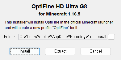 그리고 옵티파인을 설치하려는 버전을 플레이한 적이 있어야 합니다