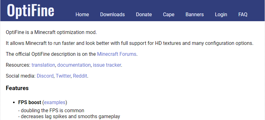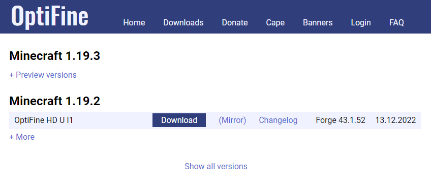 1. https://optifine.net/home에 접속한다