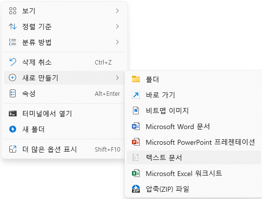 그다음 새로운 텍스트 파일을 생성해 줍니다