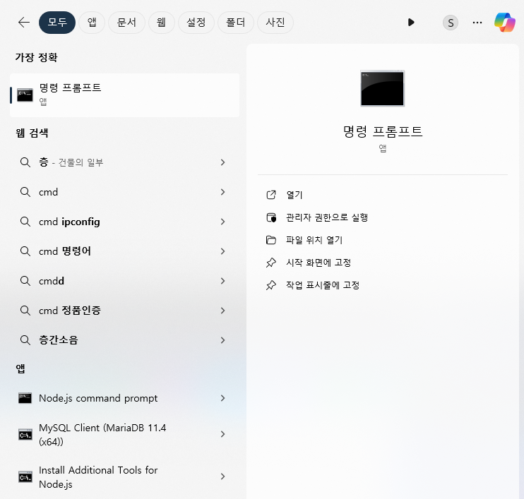 검색에서 cmd를 검색