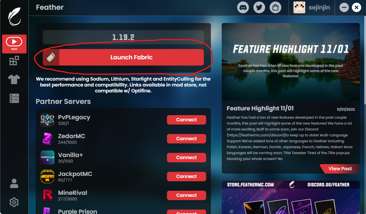 Feather client(페더클)과 같은 클라이언트를 사용할 시 바닐라 마인크래프트와 달리