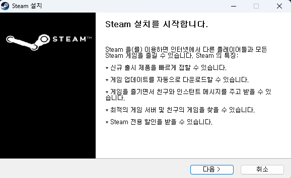 스팀은 여러 친구들과 플레이하고 여러 다양한 게임을 즐기고 토론하고 공유하기 위해 만들어진 서비스입니다.